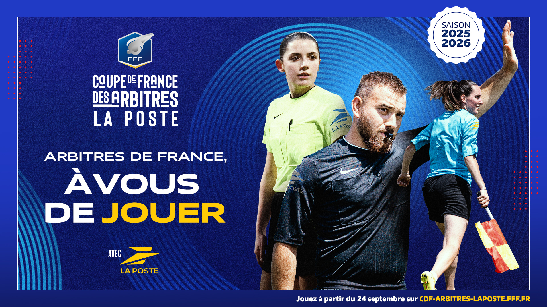 La compétition est lancée, tous les arbitres amateurs de France métropolitaine et ultra-marine ont jusqu’au mercredi 15 octobre 2025 (11h) pour participer à la 4e Coupe de France des arbitres La Poste.